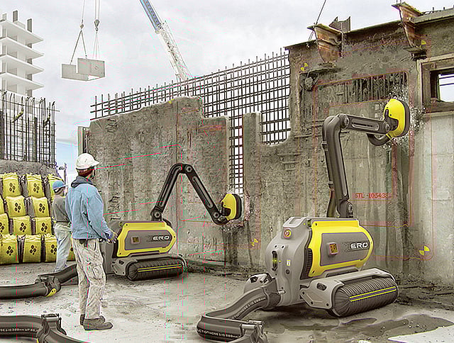 The Ero Robot, a concept for now, runs on electric power and even reuses some of its own energy; as the vacuum sucks down concrete, the moving air generates electricity, which can be reused.
