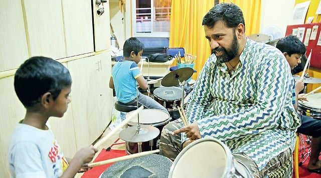 What catches your eye when you enter Jus Drums – School of Percussion, in Chennai’s busy Mylapore area, is the sheer number of Trinity College of Music certificates that hang on the walls. They have one singular purpose — to motivate students who take up those exams. Murali Krishnan, the 38-year-old percussionist has been running this school for almost fourteen years and has trained around eight hundred students to play the drums. But ever since he started the school in 2003, he admits that the one thing he always wanted to do was to help children who couldn’t afford the classes, to enjoy the magic of rhythm.