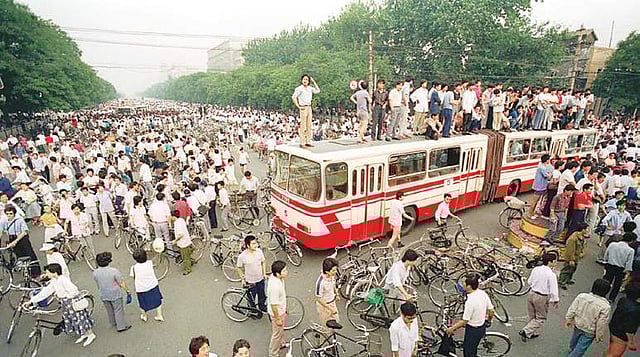 Set against a backdrop of rapid economic development and social changes in post Mao-era China, the protests reflected anxieties about the country’s future. Students called for democracy, greater accountability, freedom of the press, and freedom of speech. Party authorities declared martial law on May 20, and mobilised as many as 300,000 troops to Beijing.