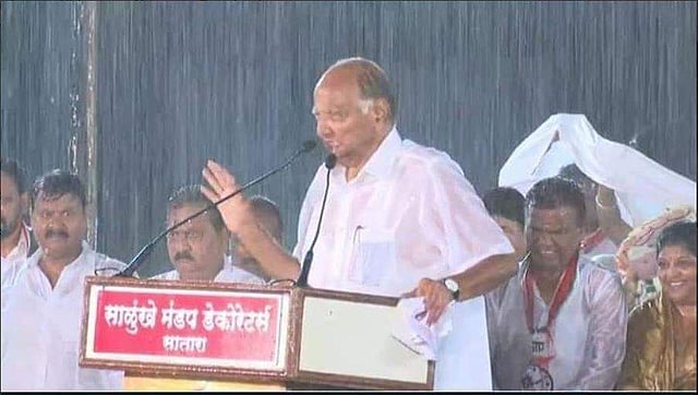 SATARA (Maharashtra): Nationalist Congress Party (NCP) chief Sharad Pawar addressed a public rally in Satara amidst heavy rains on Friday. The veteran continued to address a large crowd even during the heavy rainfall.