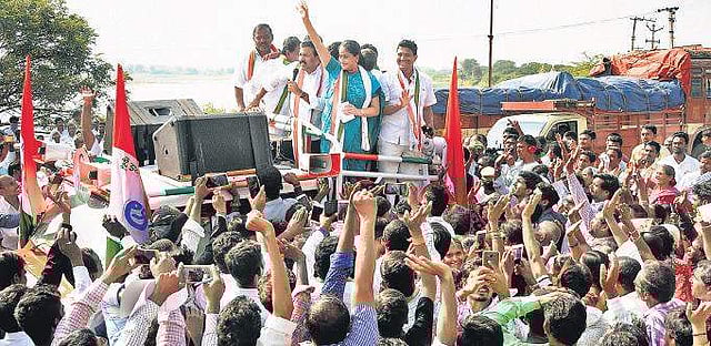 KARIMNAGAR: Congress party star campaigner Vijayashanthi alleged that TRS is making false promises. She along with AICC secretary Srinivasan Krishnan and TPCC publicity chairman Mallu Batti Vikramarka addressed the Mahila Sadassu programme at the party office here on Saturday. The programme was organised by KG to PG educational institutions JAC.