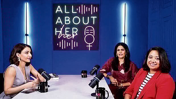 Soha Ali Khan’s podcast, All About Her, doesn’t fall into the typical ‘by woman, for women’ trope but goes beyond it, with conversations that come both as a breath of fresh air and a scent of meaningfulness. With eight episodes so far, it primarily focuses on women’s wellness, and takes a nuanced approach on sexism, gender stereotypes, inequality, and feminism. Along with bringing interesting personalities across industries—be it health, cinema, or politics—the podcast also invites experts suitable to each conversation and creates a space to discuss “all about her”. The conversations don’t just scratch the surface, but delve deeper into the challenges, joy, and dilemmas women experience everyday in their lives.