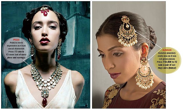 The final price of the product depends on the design, gemstones and workmanship, Polki is comparatively expensive as it has diamonds, says Gulati. For example, the price of a polki set (neckpiece and earrings) can vary from Rs 3 lakh to Rs 3 crore, depending upon the size and quality of diamonds, and intricacy of the design. But it costs less than polished diamond jewellery. On the other hand, a kundan set can cost between Rs 50,000 and Rs 2 lakh. The price goes down if glass imitations are used instead of diamonds or precious stones.