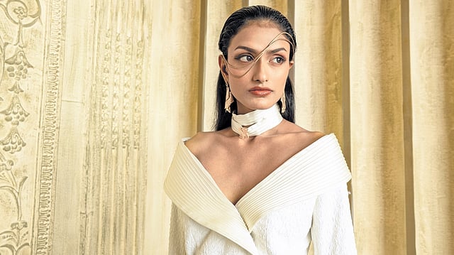 Then where does Sartorial Festive 2025 enter the picture? “Receptions and cocktails are occasions where they are open to experimenting, and also wearing something they can reuse, whether it’s an embroidered jacket with power shoulders or a well-fitted pantsuit with a cool belt,” says Sarah. She also believes that women are opening up to the idea of experimenting with pantsuits for such occasions. “I’m not saying that they’ll suddenly wear a tuxedo with a bow tie, but there’s definitely a little feminine touch to masculine tailoring. I love catering to women who come and ask for tuxedos and suits. One can even wear Indian jewellery with their suits, which it looks amazing,” she believes.