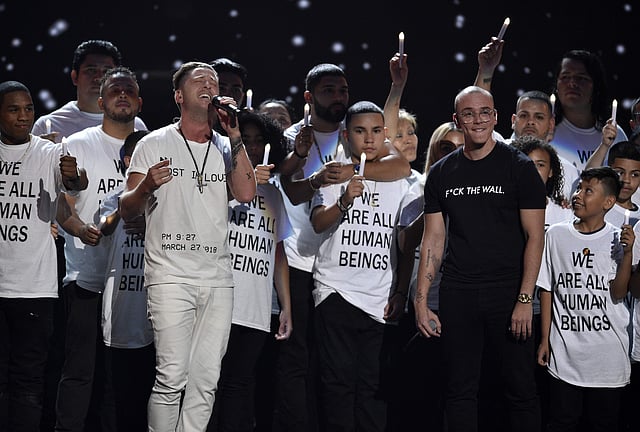 During his VMA performance of "One Day" on which he was joined by OneRepublic's Ryan Tedder, the rapper also showed his support for immigrants, by saying: "Bring us your tired, your poor, and any immigrant who seeks refuge. Together, we can build not just a better country, but a world that is destined to be united."