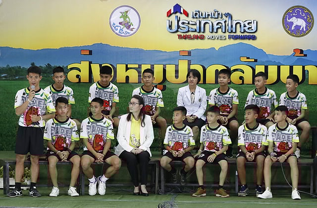 Assistant coach Ekkapol "Coach Ake" Chantapong, spokesperson of 13 Thumluang Co Ltd, said they are grateful for the opportunity to thank the people and organisations from Thailand and around the world who came together to retell their story.