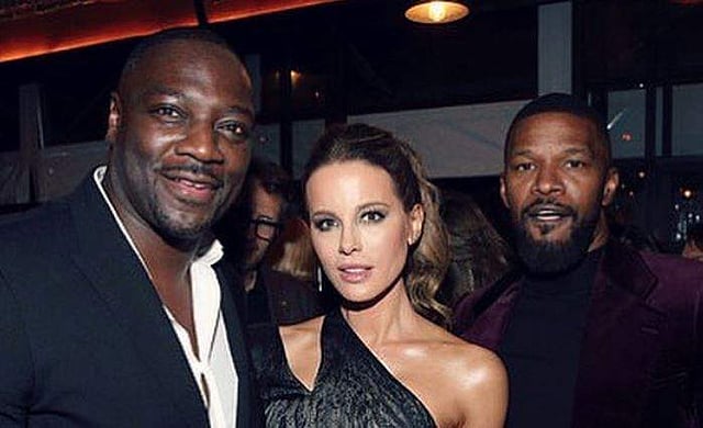 "(Last) night at #hfpa party with @therealadewale @iamjamiefoxx and @jsauluck. I would like to point out that standing next to someone does not mean I am dating them," Beckinsale wrote on Instagram alongside a pair of photos of herself posing with the men.