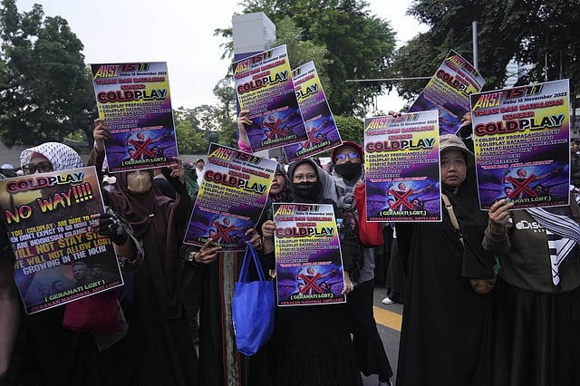 JAKARTA: More than 200 conservative Muslims marched in Indonesia's capital on Wednesday, calling for the cancellation of a Coldplay concert that night over the British band's support for the LGBTQ+ community.