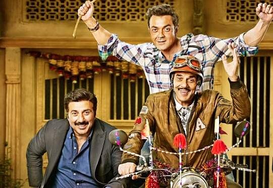 The trailer of the third installment in the 'Yamla Pagla Deewana' franchise shows the 'Sholay' star as a drunkard who hallucinates about 'apsaras'. While Sunny embraces his 'dhai-kilo-ka-hath' image, Bobby romances Kriti Kharbanda in 90s style.