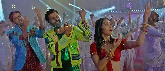 Ayushmann and Nushrat are joined by Riteish, in the end, to conclude the song with the trio dancing on the chorus.