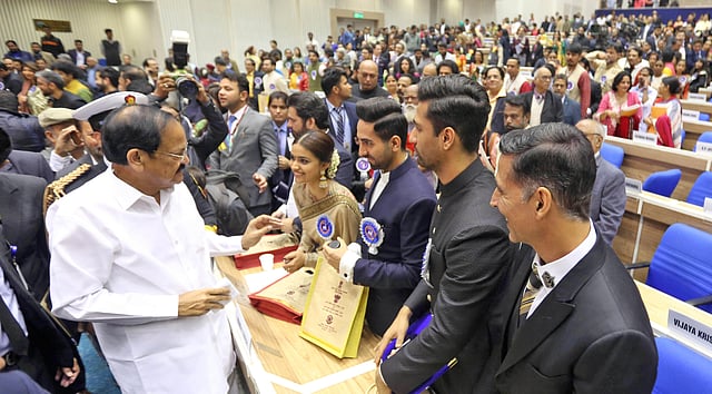 NEW DELHI: Vice President Venkaiah Naidu on Monday presented the National Film Awards to this year's winners with actors Vicky Kaushal, Ayushmann Khurrana and Keerthy Suresh receiving top honours.