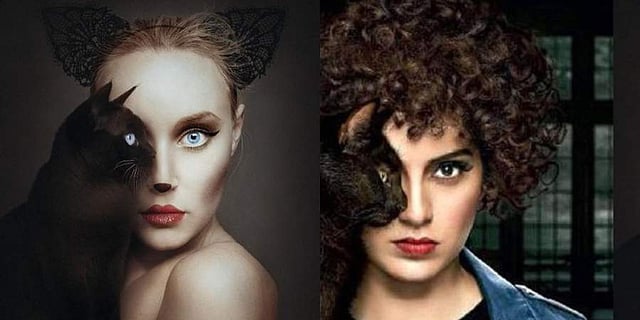 Borsi on Monday shared the image of an original artwork of hers, which has a girl's close-up with a cat on one of her eyes. Makers of "Judgementall Hai Kya" had recently released a poster featuring Kangana with a cat in a similar pose, and one of Rajkummar poster with a rat instead of a cat on his eye.
