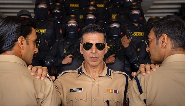Bollywood's 'Khiladi' shared a picture from the sets of the film where he can be seen sharing the screen with Ranveer Singh who played the role of Sangram Bhalerao in 'Simmba' along with Ajay Devgn who played Bajirao Singham in 'Singham.'