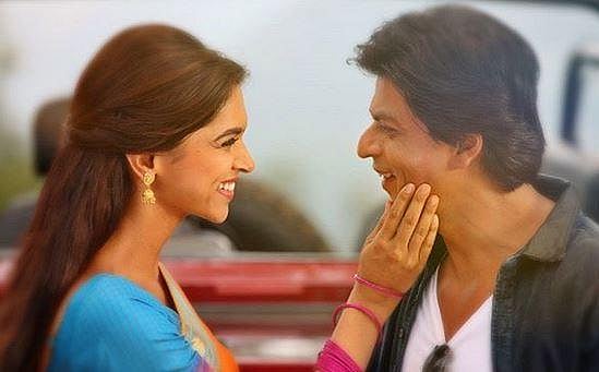 In the pictures shared by the 'Piku' actor, the first one shows a snap that captured a light moment between Deepika and Shah Rukh who share a romantic connection in the movie. The second one shows the 'Happy New Year' actor in the red Kanjiwaram saree as she laughs her heart out while holding King Khan, while he smilingly poses for the camera.