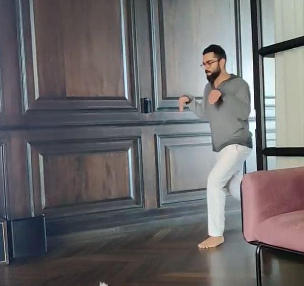 In this latest video, Kohli was seen walking around the house like a dinosaur and creating sounds like one too. Anushka shared the video for her followers on Instagram and her post read: "I spotted.... a dinosaur on the loooose."