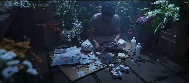 The teaser opens with Dulquer's character making art of our newspaper cuttings and gifting a bouquet of paper-cut flowers to Shreya's character before the premise spirals into a dark web of thrill and mystery, and speaks about the revenge of an artiste.