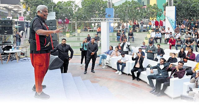 The venue, which is usually packed with professionals who are always in a rush to leave their offices, saw a change in pace as people congregated in the central amphitheatre, to listen to the speakers. Diwaker Banerjee (36), a techie, shared, “I find this to be a lovely evening. It is nearly the weekend, and getting to attend such events with your colleagues and friends after a long week is a relief.”