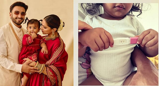 The couple shared an emotional photograph featuring their daughter, Dua Padukone Singh, holding a pregnancy test kit showing two pink lines, indicating a positive result. Both Deepika and Ranveer are seen gently holding their daughter’s hands in the image, marking a heartfelt family moment. The post was kept minimal, captioned only with evil eye emojis and shared jointly by both actors.