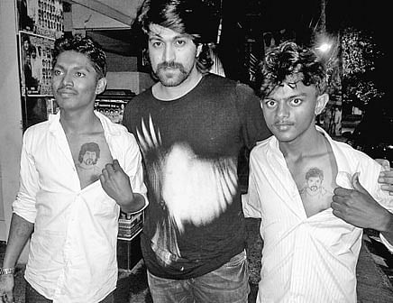 While Yash had a temporary tattoo of icon Vishnuvardhan etched on his chest for his film Mr and Mrs Ramachari, around five die hard fans have got a permanent tattoo of the young actor himself.