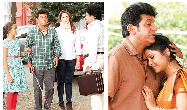 The film’s crew is back in the city on Sunday after completing shooting in Shivamogga, Sagara and Sigandhur. Kavacha, directed by GVR Vasu, is inspired by a crime thriller Oppam, starring Mohanlal and directed by Priyadarshan. The Kannada version has the Shivanna playing a visually-impaired person in it. And going by some stills City Express has gotten hold of, the actor has completely got into the skin of the character.