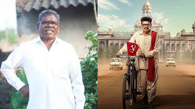 Directed by debutant Parameshwar Hivrale and produced by N Suresh Reddy under Pravallika Arts Creations, the film’s first look immediately conveys Narsaiah’s grounded persona. Shivarajkumar appears in a simple white kurta-pyjama with a red scarf, strolling alongside a bicycle against the Assembly’s backdrop. A red flag bearing the hammer and sickle underscores his leftist ideology, while books tied to the bicycle subtly reveal the politician’s intellectual depth and lifelong commitment to knowledge.