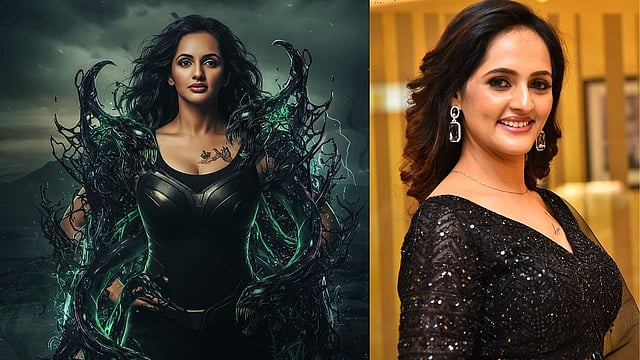 The first look of the film shows Jyothi Poorvaj, who plays the female lead, standing enveloped by glowing tendrils that pulse like veins of light. She is neither fully human nor entirely machine. Her sleek black suit shows precision, and her calm gaze holds something almost soulful, as if coded emotions have found a new form.
