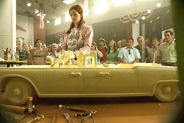 Almost absurdly well-adjusted and ever-keeled for her age and background, even if prone to comments like, "Are these crackers for real?" in the face of weird behavior by adults, Destiny is revealed as the Mozart of butter carvers, a natural genius in an enterprise her new mom admits is "kinda rednecky." Faced with likely defeat in both the regional and state competitions, where Destiny does remarkable work sculpting the Freedom Train and a pieta-like rendering of herself and her imagined real mother, Laura resorts to deceit in league with a good-ol'-boy former flame (an amusing cameo by Hugh Jackman), revealing her whiny, self-pitying true self in the process.