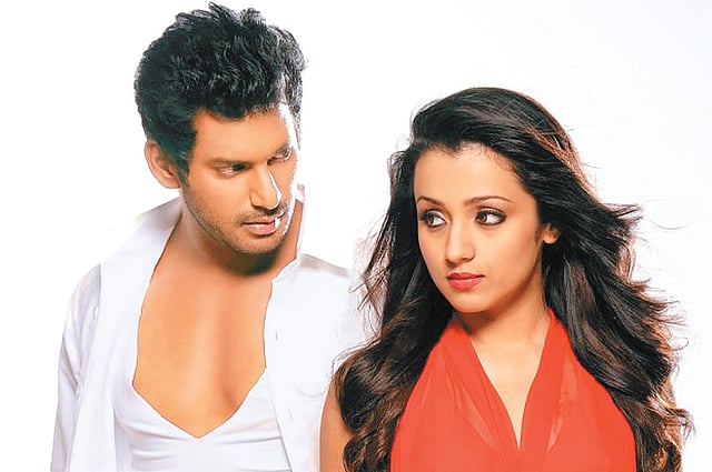 The story tracks the life of Shakthi a forest-guide in Ooty, who is in love with Rupa (Sunaina), a girl he had met on one of his trekking trips. Sunaina is refreshing in her brief role. Vishal,his lean lanky body showcased in some well designed costumes, cuts a handsome figure. The story then shifts to Bangkok where Shakthi goes to meet and patch up with the estranged Rupa. This is when the suspense begins. Shot at by some criminal elements, and mistaken for a Bangkok business tycoon, Shakthi soon finds his life spiralling out of control. Right about then, Maya (Trisha), his helpful co-passenger on the flight, who comes to his aid. Vishal uses his body language to good effect, bringing out the desperation of the character impressively.