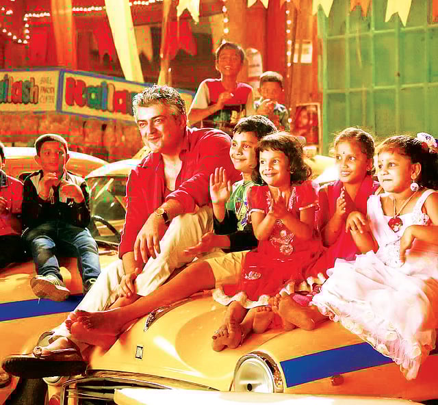 And more importantly, it is Ajith’s arresting screen presence that holds the film together. Gleeful in his brutality — a la the ‘joker’ in the earlier Dark Knight flicks — the actor is a delight to watch as he transforms from the naïve Ganesh into the ruthless avenger Vedalam on a vendetta spree.Ajith sports his now familiar salt-and-pepper look here as well. No doubt it sits well on him. But if he repeats it often, it might get boring. The plot is similar to many films where the hero has two avatars, one in contrast with the other. The early scenes depict the baddies and their activities — moments which we revisit later.