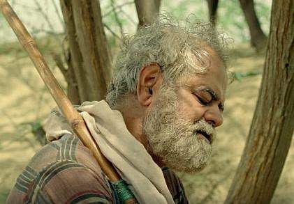 The narrative begins with close-up shots alternating between a pair of weary feet trudging a beaten path and a head shot moving with a staff till the old man comes preciously close to a cliff in the barren ravines of Mahua in Bundelkand.