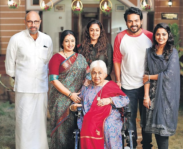 The opening credits start, surprisingly, with Jyothika’s name, followed by Sathyaraj and Karthi. However, she takes a backseat here, behind Karthi and Sathyaraj. She isn’t short-changed through. There’s silent dignity, a quiet resilience in the way Parvathy carries herself. And again, all it takes is one scene for us to look at Parvathy differently. I wished we had more scenes of Jyothika and Karthi together. Jeethu’s biggest victory might be getting this casting right. I quite liked Govind Vasantha’s score which works in the same zone as the film itself — making the usual enjoyable. Even the cinematography feels cut out of the same fabric, except for a few easter eggs.