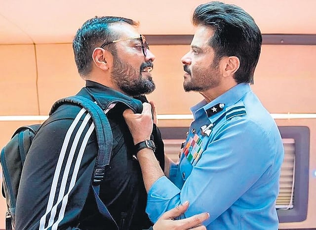 For fans of both AKs, there’s much to chew on. Anil’s older hits — Ram Lakhan, Tezaab, Mr. India, Nayak — are frequently brought up. At a police station he has hurried to, a cop tells him he has seen Woh Saat Din ‘seven times’. The same cop then turns around and identifies Anurag as Madhur Bhandarkar. These injokes earn a chuckle or two, though Vikram isn’t shy to poke into other directions: a line about Anurag’s assistant graduating to girlfriend status is surprisingly tart in such a freeflowing film.