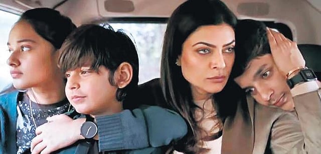 An engaging plot, with an imperilled Sushmita Sen at its centre. It’s a concoction many of us know too well. More than her billowing red saree in Main Hoon Na, I remember her frantic dash in Aankhen, the clock ticking as she comes to grips with a truly desperate situation. She fended off a stalker in Dastak, a serial killer in Samay, and half a dozen ghosts in Vaastu Shastra. Often, the stakes in these films concerned the safety and security of a child. It’s at this juncture that we meet her again, ten years after she took a break from Hindi screens.