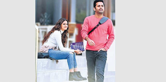 Nithiin and Keerthy Suresh’s romantic drama Rang De is undoubtedly more entertaining than recent films of this genre. Yet this film rides on an old and predictable story.Arjun (Nithiin) and Anu (Keerthy Suresh) are childhood buddies and neighbours, who endure a love-hate relationship. He’s a student with poor academic records, she’s studious, thoughtful and attention-seeking. They grow up together for 20-odd years and for Arjun, Anu is one annoying friend everyone has in their life and is also someone his parents (Naresh VK & Kausalya) love more than him. Arjun bears the brunt of his father for Anu’s achievements and he steadily develops a strong dislike for her. He wants to stay away from Anu so that his father stops comparing him to her. Anu, on the other hand, assumes Arjun shows real affection for her and falls for him. What happens next?