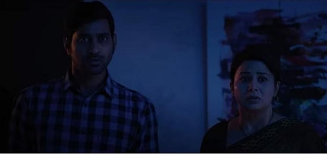 The film is visually stimulating as it moves at a dramatic pace. Cinematographer Nagesh Banell's camera work shifts the tone of the film from one point of view to the next, giving us a feeling that most of the film is one long take. Also, the scenes shot in the farmlands on a rainy night or involving night vision are so neatly executed that you will be on the edge of your seat. Prashanth R Vihari's background score along with bouts of silence and spooky moments elevate the viewing experience.