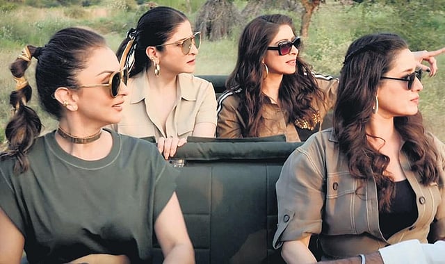The wives are constantly pulling each other up and raising toasts to girl power but it gets dreary after a point. In a sequence, Seema sends a photo of the gang from a vacation to her son Nirvan. “You look like gareeb (poor) Kardashians,” he replies. Seema takes that as a compliment.