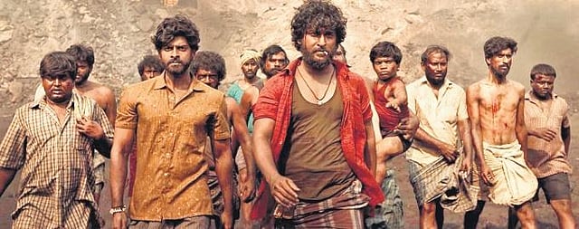 We see Dharani (Nani) make a living with his friends by pilfering coal from moving trains, with his parkour jumps reminiscent of the action choreography in Pushpa. At the heart of Dasara is the jigri dosti of Soori (Dheekshith Shetty) and Dharani and there are no points for guessing which recent successful Telugu film comes to mind when we talk of male friendship.