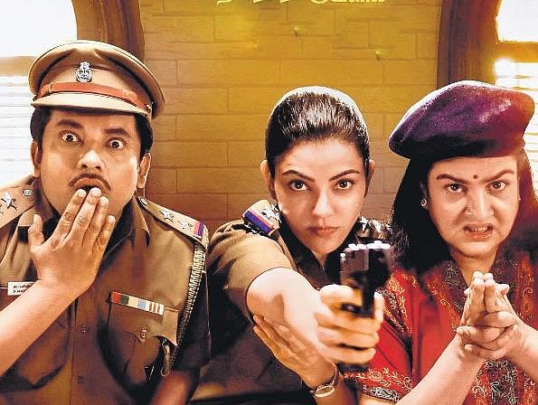 Let me try to make sense of this convoluted mess of a screenplay. Let me try... Police officer Arthi (Kajal Aggarwal) is facing suspension because she behaves weirdly. She is disturbed by aspiring filmmakers Yogi Babu, Jegan and Redin Kingsley. Let’s leave this angle for now.