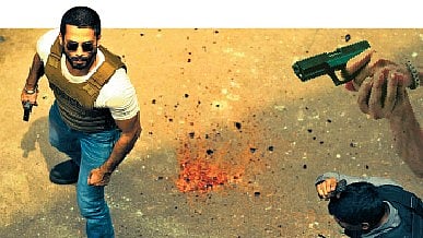 In his hero-entry scene in Deva, Shahid Kapoor, in a buzz cut and a stubble, thrusts his pelvis to ‘Are Diwano Mujhe Pehchano’ from Don (1978). In a mural, Amitabh Bachchan’s Vijay, another Salim-Javed anti-hero, lounges in the background. In the desperation to attain mass appeal, the angry young Bachchan has become the new cardboard cutout of every deviant and volatile protagonist in Hindi cinema.