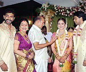 THE mood was upbeat and festive in the Vijaykumar household at Alapakkam on Sunday evening. The occasion was the engagement ceremony of celebrity couple Manjula and Vijaykumar’s daughter, Sridevi Vijaykumar to Rahul. Son of Narsimha Rao and Uma, Rahul runs his own IT company in Hyderabad. Sridevi has been a successful child artiste in movies like 'Deiva Kuzhanthiai' and so on apart from acting as heroine in 'Thitikude', 'Priyamaana Thozhi' and several other films. She has also been active in the Telugu film industry.