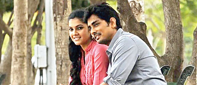 Sidharth plays Prabhu with quiet efficiency. Debutant Ashrita seems a paler version of Taapsee, her performance too lifeless. The dragging dialogue delivery doesn’t make it any better. Creating maximum impact is Kay Kay, the talented actor from Hindi films. As the arrogant smart cop Manoj who makes it a personal issue to catch Prabhu, the actor is splendid. Manoj constantly attending calls from his wife in the midst of tense chases and fights seems contrived.