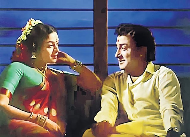 Even as Padmini’s Mohana falls for Sivaji Ganesan’s Sikkal Shanmugasundaram, she holds forth on her own life and art and there is a lesson in there for screenwriters of today. In the iconic ‘train’ scene even as the duo romance, Padmini is never fully ‘lost in love’. She asks Shanmugasundaram why he was hiding and watching her dance (Maraindhirundu paarkum marumamenna in which she evokes the sensual, divine as well as the mundane hard work that only a dancer’s body can produce, by turns). She asks him if he was shy, to which he says, he wasn’t shy because he wasn’t a girl. An unfazed Mohana’s sharp retort? “Does art know the difference between a man and a woman?” Just like that, a timeless nugget is slipped in casually.