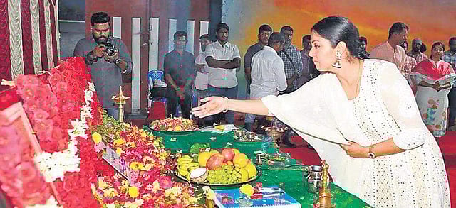 Jyotika, who is awaiting the release of her Tumhari Sulu remake, Kaatrin Mozhi, has started working on her new film, directed by debutant S Raj. The yet-to-be-titled film, which is produced by SR Prabhu under his Dream Warrior Pictures, was launched yesterday. Tentatively referred to as Dream Warrior Pictures 21, a school set worth around 50 lakhs is being constructed in the city for the project.