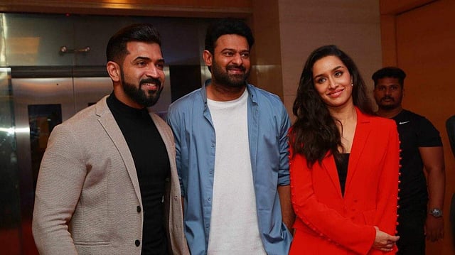 The press meet of Prabhas' much-awaited 'Saaho' was held on Friday. Lead actors Prabhas, Shraddha Kapoor and Arun Vijay were in attendance along with director Sujeeth, compose Ghibran and art director Sabu Cyril.