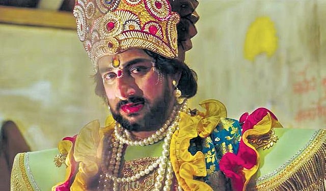 The boy knows his family’s situation all too well. Earlier in the film, Gandharva’s face, which brims with pride and joy when his principal hands him the gold medal, falls perceptibly when he’s told about the entry fee. He immediately realises that it may be something they cannot afford. He hesitates before telling his mother and later, his father, about it. So, when his father says this is as far as he could go, he only sorrowfully asks how it is that Pandurang, who inspired him to take up painting, now wants him to give it up. The Dashavatara play, on the other hand, is, as is the wont of folk theatre, quite loud and extremely dramatic. It makes for a nice contrast.