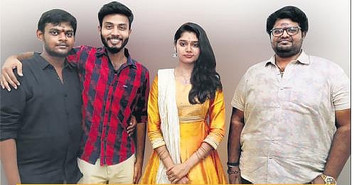 From left to right: Director Koushik Shribhuhar, Sanjay, Aradhya and producer CV Vickram Suria Varma