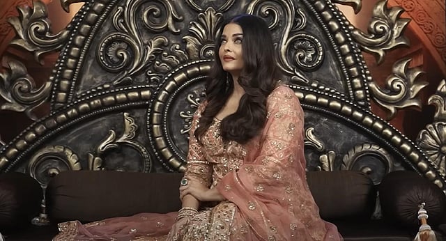 The diva marked her presence in a pink embellished suit. The bright pink canvas of her traditional suit was adorned with elaborate embroidered golden motifs. Aishwarya completed her statement earrings and golden bangles. She opted for minimal makeup for the glam and kept her hair open.