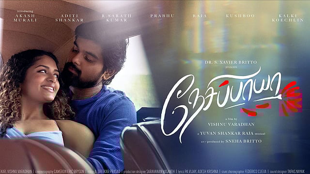 Produced by XB Film Creators, Nesippaya boasts a stellar supporting cast including R Sarathkumar, Prabhu, Kalki Koechlin, and Khushbu. The music is composed by Yuvan Shankar Raja, with cinematography by Cameron Eric Bryson and editing by A. Sreekar Prasad.