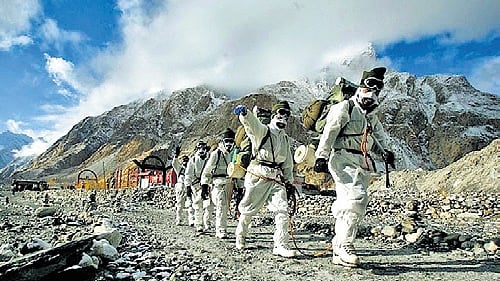 Besides the military threats from China and Pakistan, the biggest challenge is from the elements. The temperature all through the year remains sub-zero and can even plummet to minus 60°C in the harsh winter. Besides, there is a constant fear of avalanches, crevasses and high speed wind. The rarefied atmosphere at the high altitude where the oxygen level is low, affects the soldiers both physically and psychologically. The effect of low temperature can lead to frost bites, chilblains (swollen skin, which appears several hours after exposure to cold), hypoxia (when oxygen is not available in sufficient amounts at the tissue level) and hypothermia (lengthy exposures to very cold temperatures use up the body’s stored energy, leading to lower body temperature).