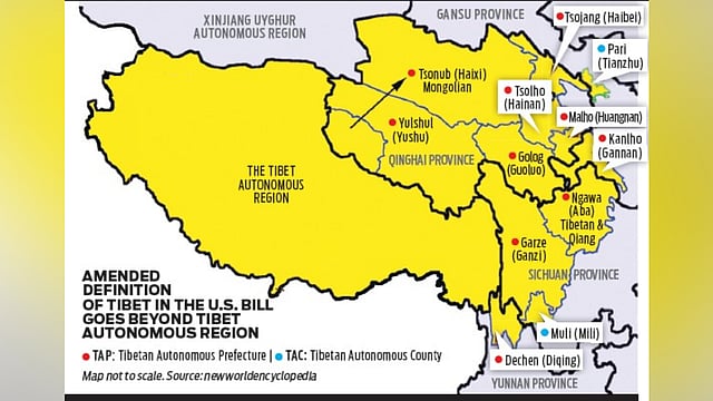 The 2024 bill is much stronger in terms of what it seeks to achieve. It calls for establishing a statutory definition of Tibet and clearly states that it will include areas in Chinese provinces outside the Tibet Autonomous Region (TAR) – a limited area which China established in 1965 to be treated as Tibet. “This bill defines Tibet to include the TAR and the Tibetan areas of the Qinghai, Sichuan, Gansu, and Yunnan provinces,” it says. The bill also states that it is US policy that the conflict between Tibet and China is unresolved and that Tibet's legal status remains to be determined in accordance with international law.